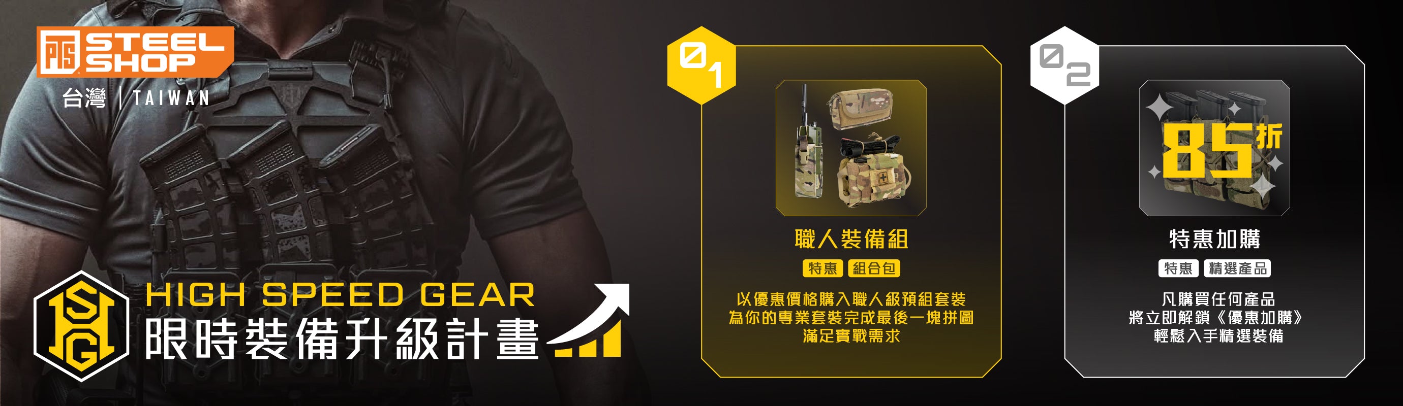 - 涵蓋武器配件與戰術裝備的全套供應